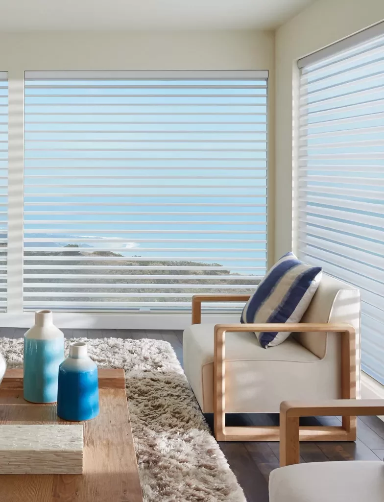 Вращающиеся мягкие тканевые лопасти Siluette® подвешены между двумя прозрачными накладками, которые смягчают и рассеивают свет с непревзойденной элегантностью, устанавливая совершенно новый стандарт стиля и красоты