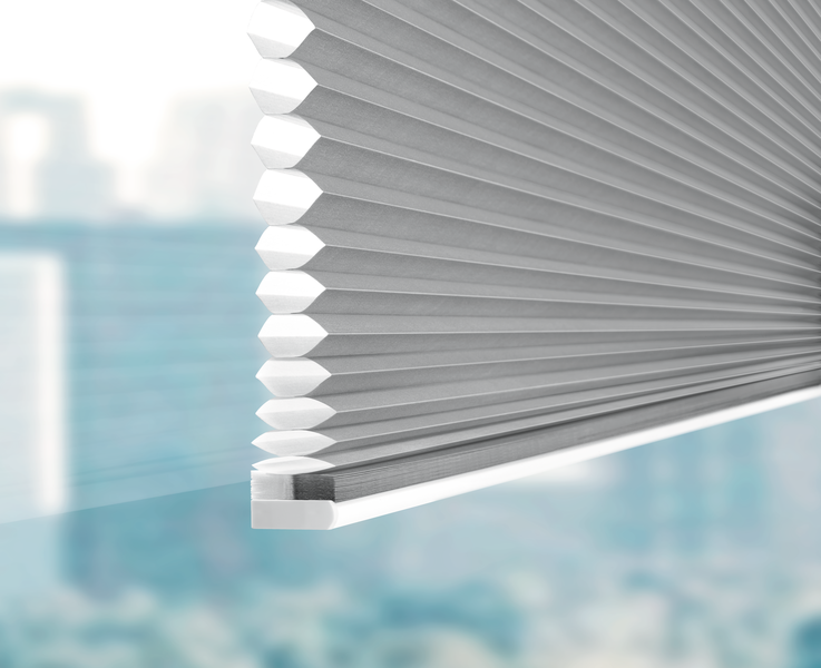 Сотовый плиссированный материал DUETTE® защищает от агрессивного воздействия солнечных лучей и помогает регулировать теплопоглощение окна.