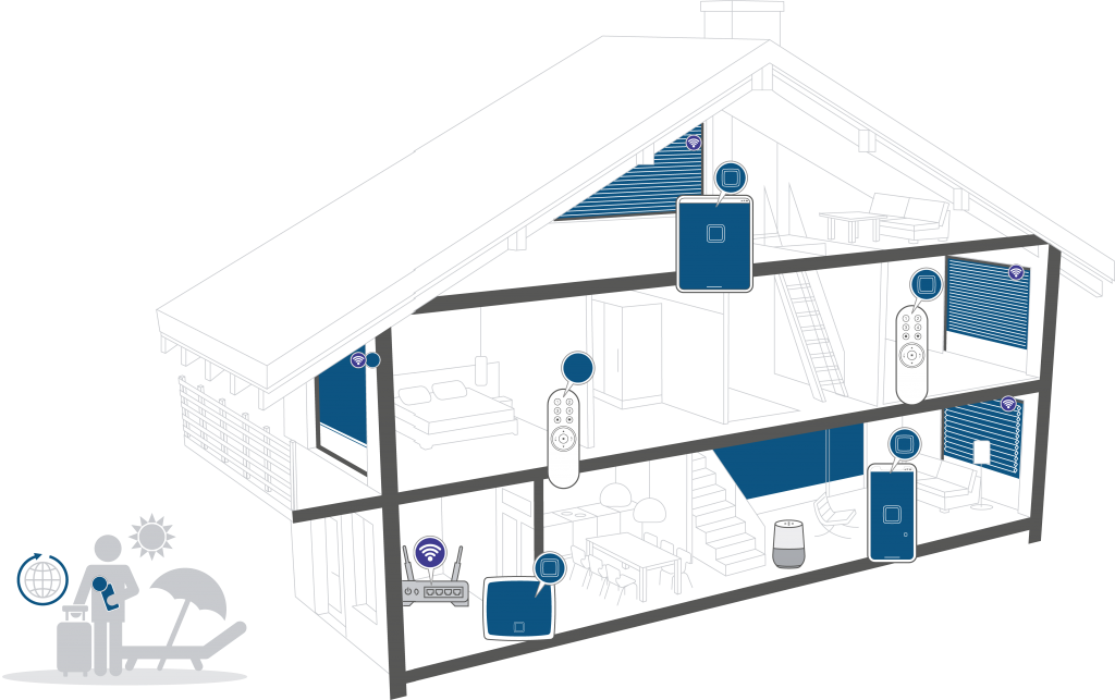 Удобное управление шторами является преимуществом в любом помещении. Идеальное освещение, конфиденциальность и безопасность возможны простым и продуманным способом. Таким образом, с помощью управления сценой и временем можно создавать индивидуальные сценарии для повседневной жизни – для отдельных комнат или даже для нескольких комнат вместе. И, в зависимости от концепции моторизации, управление возможно не только из дома, но и удаленно.